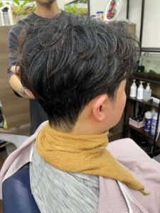 やりたいヘアスタイルより髪を長めにして多めに梳き、整髪料で固める